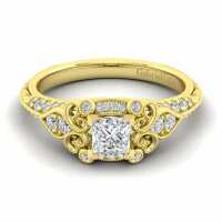 Gabriel & Co. "Abel" Princess Cut Diamond Halo Engagement Ring 18K Yellow Gold