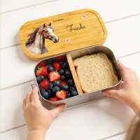 Personalisierte Brotdose mit Bambusdeckel und Namen des Kindes - Brotdose aus Metall mit Bambusdeckel, Personalisierte Brotdose, Brotdose Schule Kita