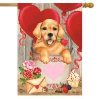 Valentine's Puppy Holiday House Flag