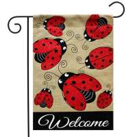 Ladybug Gathering Burlap Garden Flag