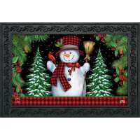 Red Checkered Snowman Winter Doormat