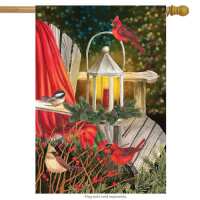 Cardinal Lantern Christmas House Flag