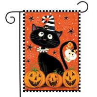 Black Kitty Halloween Garden Flag