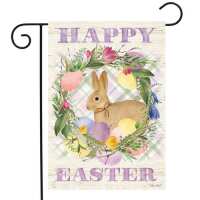 Bunny Easter Wreath Garden Flag