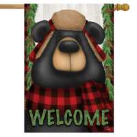 Woodsy Bear Welcome Winter House Flag