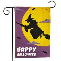 Flying Witch Halloween Burlap Garden Flag