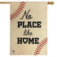 No Place Like Home Baseball Burlap House Flag