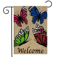 Butterfly Welcome Spring Burlap Garden Flag