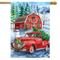 Picking Up The Tree Christmas House Flag