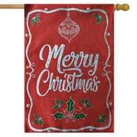 Merry Christmas Holly Burlap House Flag