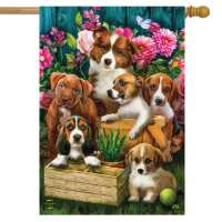 In The Garden Dogs Spring House Flag