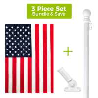 American House Flag + White Metal Flag Pole + Adjustable Bracket Set