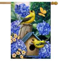 Goldfinches and Hydrangea House Flag