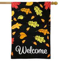 Welcome Leaves Fall Burlap House Flag