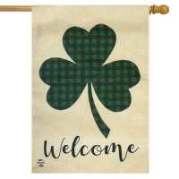 Welcome Shamrock St. Patrick's Day Burlap House Flag