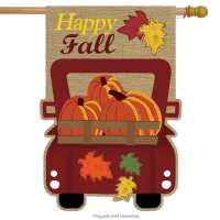 Happy Fall Pickup Burlap House Flag