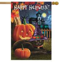 Black Cat Halloween Hat House Flag