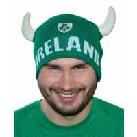 Beanie Hat With Viking Horns And Ireland Crest Green Colour