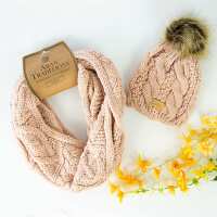 Aran Knit Style Cable Hat and Snood Gift Set Natural