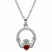 Platinum Plated Claddagh January Birthstone Pendant With Swarovski Crystals