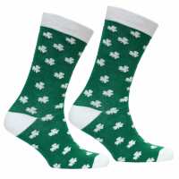 Green Lucky Irish Socks With White Toe And Shamrock Pattern Design