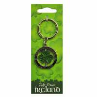 Metal Spinner Keychain With Green Glitter Lucky Shamrock