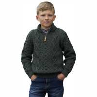 Kids 100% Merino Wool Sweater With Quarter Length Zip Army Green Colour