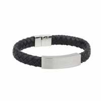 Mens Black Leather Bracelet Wristband With Steel Celtic Knot Design