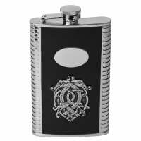 Mullingar Pewter 9Oz Stainless Steel Black Leather Hip Flask With Celtic Design