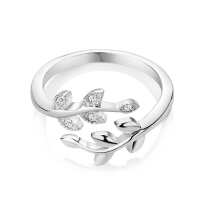 Newbridge Silverware Leaf Ring with Clear Stones