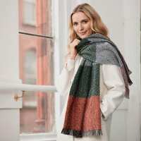 Ladies Orange & Pink Check Square Twill Scarf