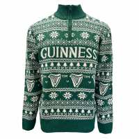 Guinness 1/4 Zip Festive Green Christmas Jumper Green / Large