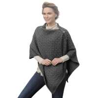 Aran Super Soft Merino Buttoned 3-Ways-to-Wear Cape Charcoal Colour