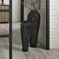 Matt Black Cast Lattice Floor Vase 68x27cm