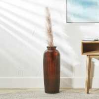 Tall Brown Ribbed Recycled Glass Floor Vase