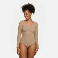 Bodysuit Sculpting Shapewear Longsleeve mit String Beige / S