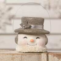 Happy Platinum Snowman Paper Mache Bucket MD