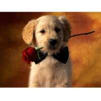 Hond met roos | Schilderen op nummer 30x40cm / Zonder frame
