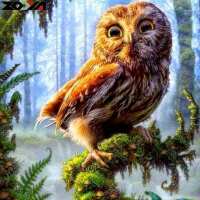 Uil op tak 20x20cm / Vierkant