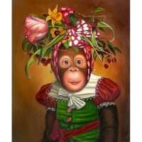 Aap met bloemenhoed 20x25cm / Vierkant