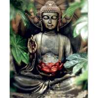 Boeddha met lely 30x40cm / Vierkant