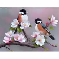 Vogels in bloeiende bomen 60x80cm (Beste kwaliteit) / Rond