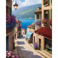 Winkelstraat aan zee 20x25cm / Rond