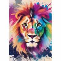 Kleurrijke leeuw 60x80cm (Beste kwaliteit) / Rond