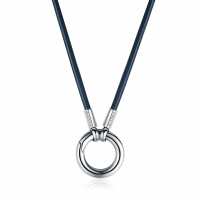 Blaue Lederkette "Fiete" mit Rundkarabiner aus Edelstahl 65 / silber