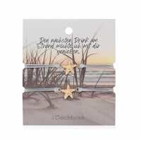 Freundschaftsarmbänder Seestern (2 Stück) aus Wachs-Seil & Edelstahl steingrau / rosegold