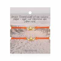Freundschaftsarmbänder Papierschiffchen (2 Stück) aus Wachs-Seil & Edelstahl Orange / gold