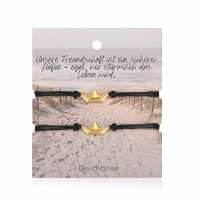 Freundschaftsarmbänder Papierschiffchen (2 Stück) aus Wachs-Seil & Edelstahl schwarz / gold