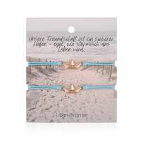 Freundschaftsarmbänder Papierschiffchen (2 Stück) aus Wachs-Seil & Edelstahl türkisblau / gold