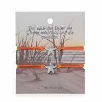 Freundschaftsarmbänder Seestern (2 Stück) aus Wachs-Seil & Edelstahl Orange / silber